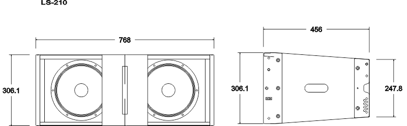 LS-210箱體上裝配有精密鋁合金吊裝係統,箱體與箱體的連接角度可調整箱體背部的連接杆在0°-8°之間任意調整,以滿足不同場合的需求。