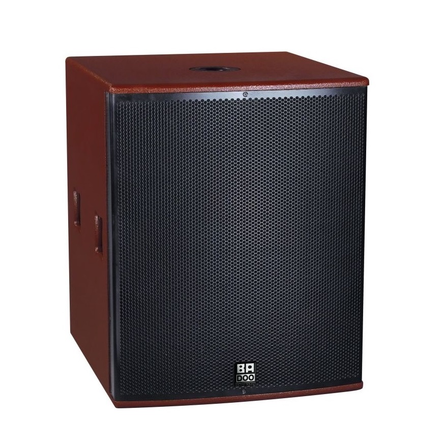 巴度音響Badoo Sound HE18SUB為單18寸超低頻音箱。低音采用一隻18寸大功率高品質220磁100mm音圈意大利原裝進口喇叭,裝配在一隻緊湊堅固的18mm樺木夾板的箱體內,低頻結實幹淨而不失彈性,配合HE係列全頻音箱,無論是高級娛樂會所酒吧使用,還是頂級商務KTV音響係統的構成,堪稱完美的組合。