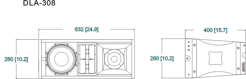 In order to make the SPL and tone with better unity for long-distance and short-distance, we used actually curved array to produce curved wavefront to cover all required area. DLA308 used better design to form such wavefront. There is aluminum alloy joint-bar on back of each box to adjust the angle between box and box from 0°~8°